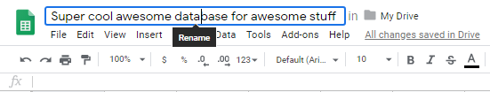 Rename your spreadsheet my clicking “untitled spreadsheet” and typing in the name of your database.