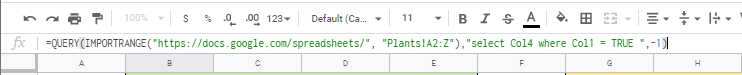 Once this is all set up, do not move the columns in the plant or creatures sub-sheets. If you do, you will have to edit your function to look at the new columns.