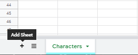 Add a new sub-sheet and give it a name. I will name this next sheet “creatures.” Remember to give it a color if you want. You can add a new sub-sheet two different ways. On the bottom of the page, or through the Insert tab.